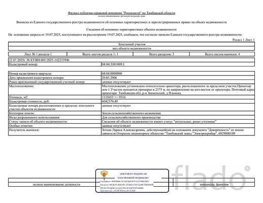Кадастровый номер: 68:04:0000000:47 (Единое землепользование).